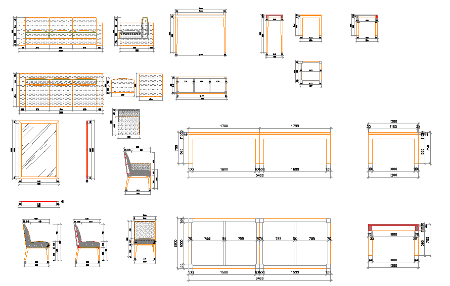 2d elevation of different furniture blocks like as table, chair, center table and sofa.Furniture Block Detail Download file.Furniture Design Block Download file, Furniture Design Block DWG File.
