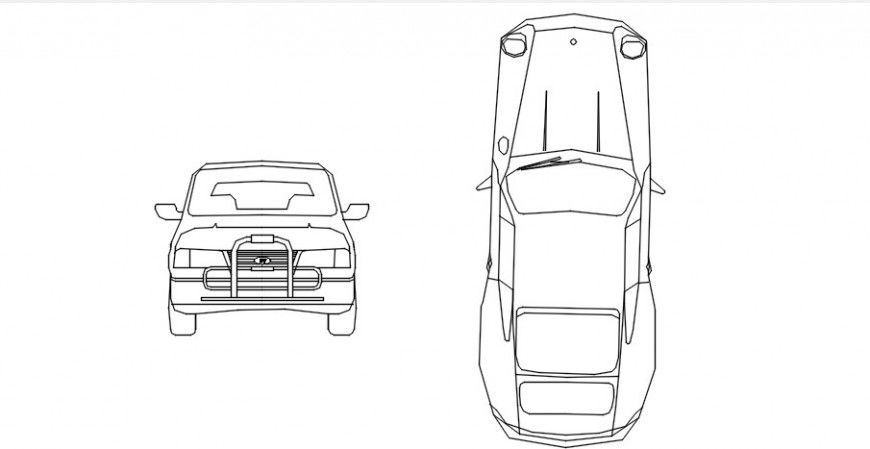 Sedan model  view car. here there is top and front view elevation model detail of car showing detail with elegant design model in auto cad format