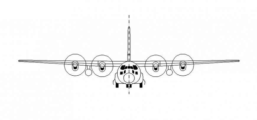 Airplane front sectional model file. here there is 2d model design of a aeroplane , front view model design with complete sectional detail area in auto cad format