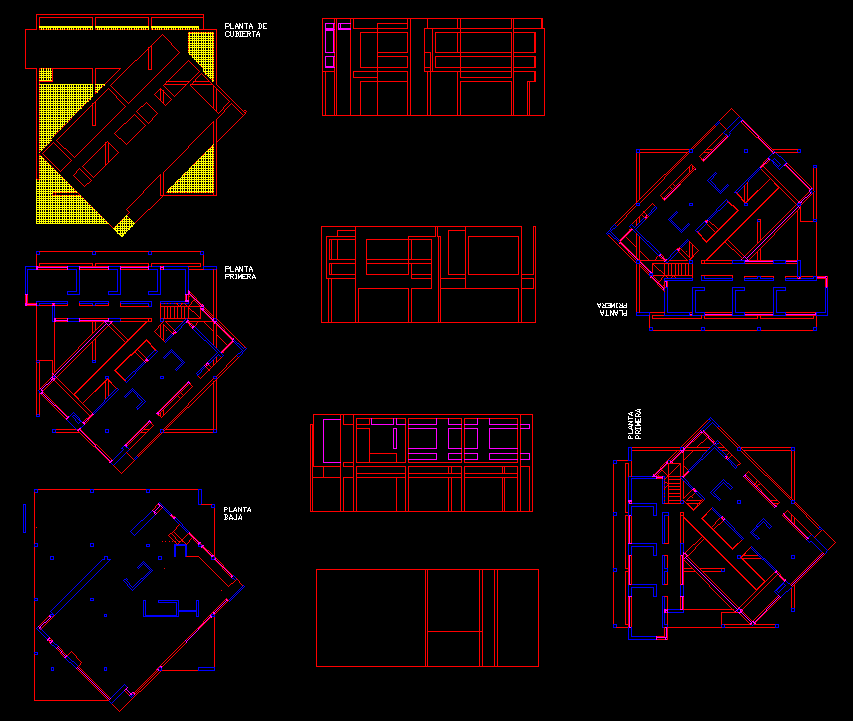View Eisenman House DWG CAD drawing including floor plans, sections, and elevations for professional architectural design and residential planning projects.