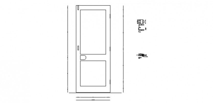 Door front elevation block detail.elevation of door, framing detail and handle detail in auto cad format