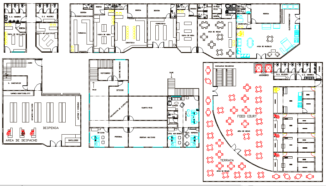 Commercial building plan dwg. Layout plan, elevation plan and section plan, including the restaurant ground floor architectonic antro, wide stage with seating area, bar and wide space of parking area. Restaurant With Commercial Centre Download file, Restaurant With Commercial Centre Design File.