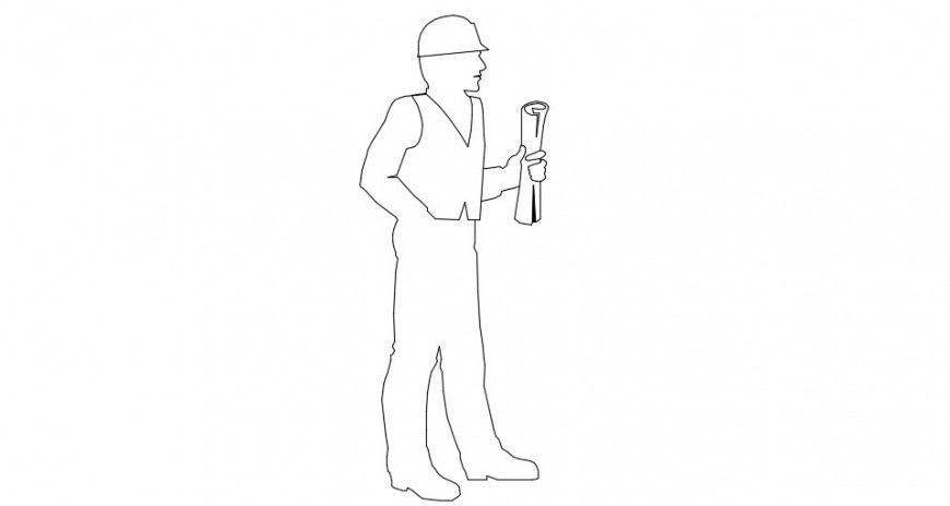 2d cad drawing of construction supervisor hardhat people with plants on his hand, download in free autocad software file and use for cad construction presentation dwg file.