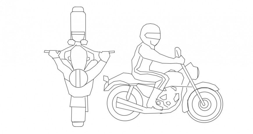 2d cad drawing of people on bike blocks cad file includes a side view and top view drawing, download in free cad file and use for multipurpose cad presentation.