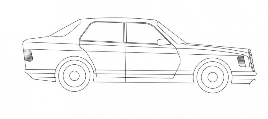 2d cad drawing of car model design along with car size and model detailing, download in free autocad software file and use for parking presentation.
