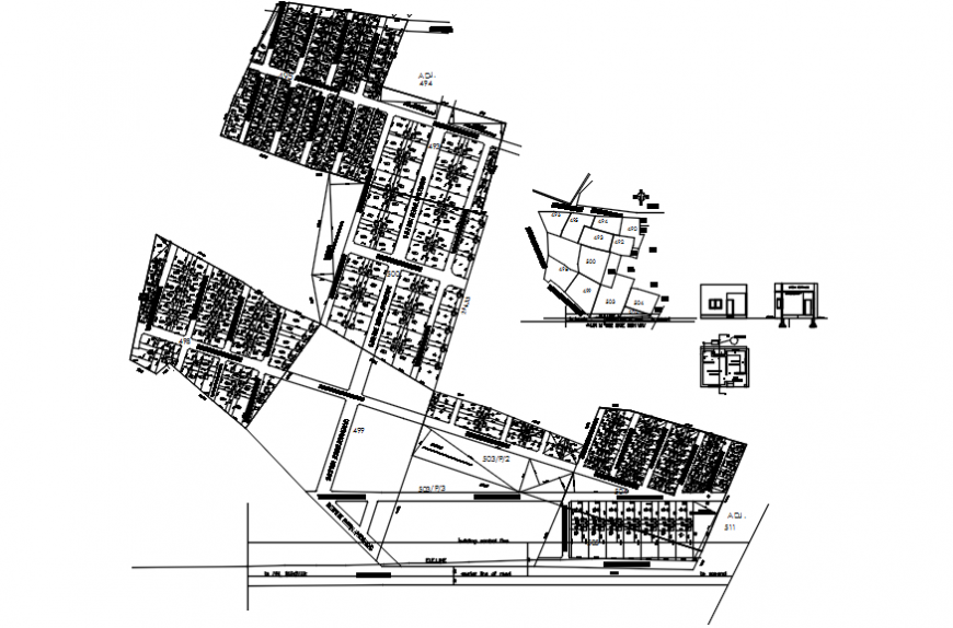 Here there is top view sectional plan detail of building , showing complete structure pattern design detail with naming and numbers detail with unit details in auto cad format