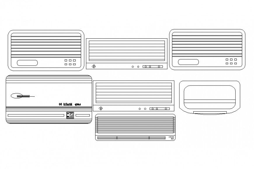 2d cad drawing of air conditioner card blocks inlcudes different size and model, download in free cad file and use in cad presentation.