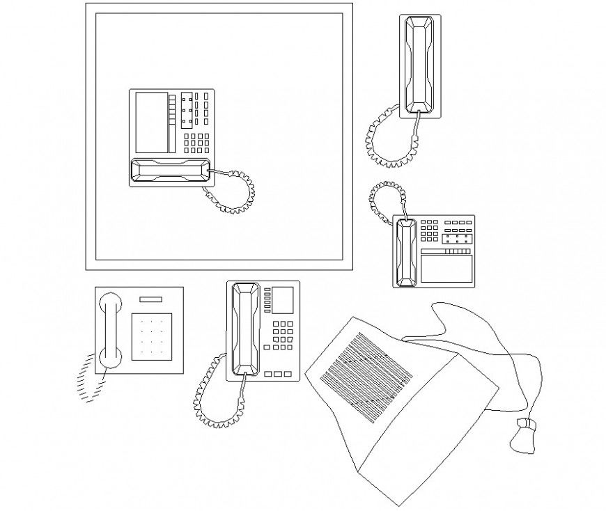 2d cad drawing of telephone with computer cad drawing, download in free cad file and use for cad presentation.
