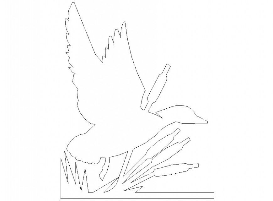 2d cad drawing of flying duck cad file, download in free autocad file and use for multipurpose cad presentation.