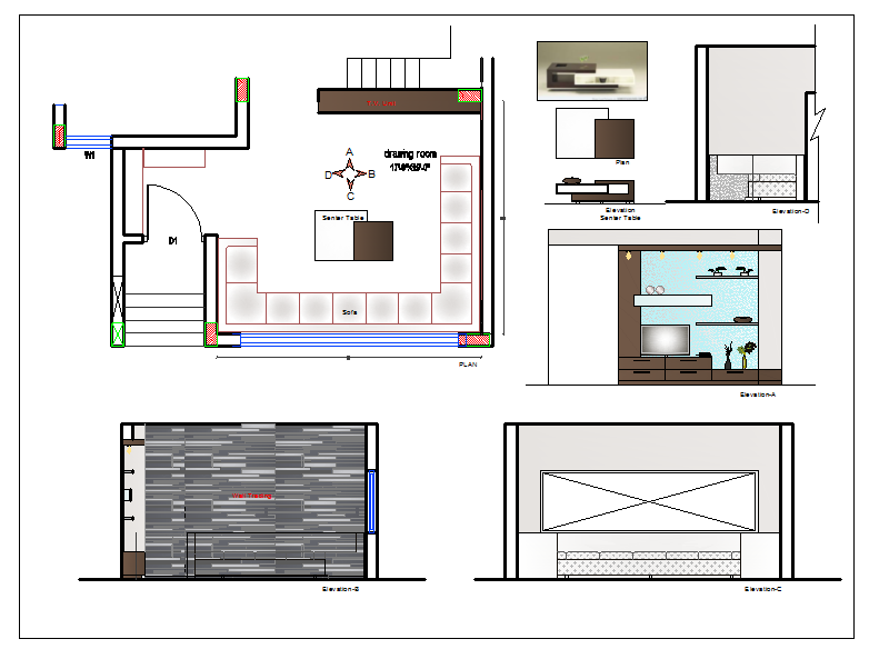 Drawing room Interior Design dwg file, main entrance, sofa set design, centre table and tv unit abd back side glass panel interior design in Drawing room,