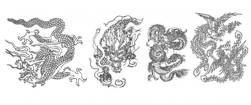 CAd drawings details of dragons units blocks dwg file that includes line drawings of animal blocks.