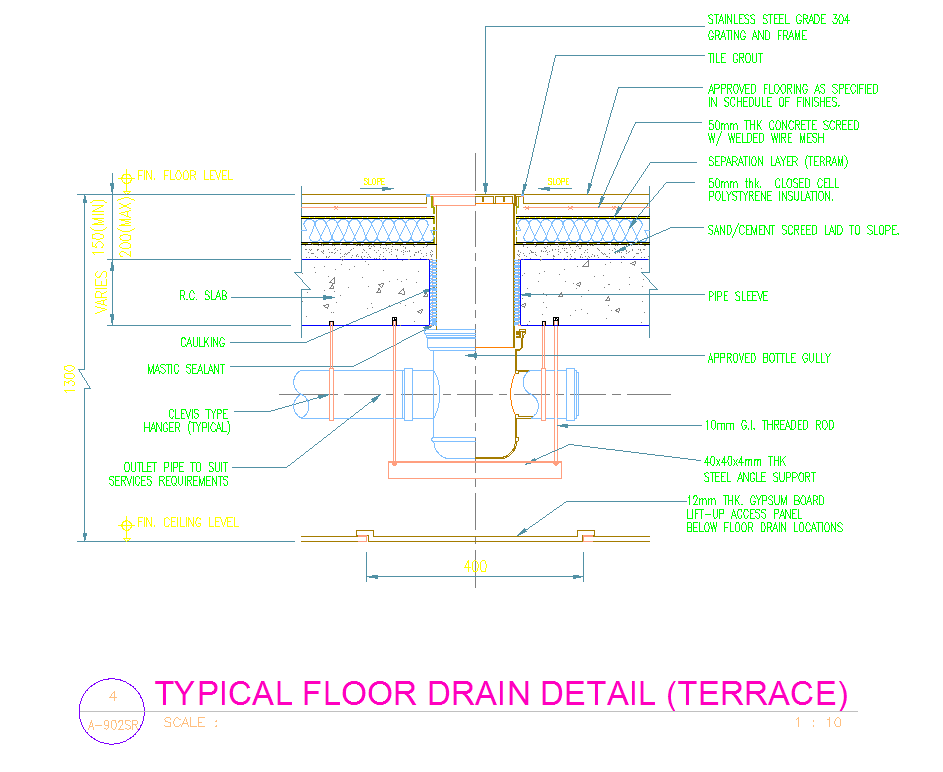 Drainage Floor detail DWG file. Many agricultural soils need drainage to improve production or to manage water supplies.Drainage Floor detail DWG file, Drainage Floor detail Download file, Drainage Floor detail Design File.This design Draw in autocad format.