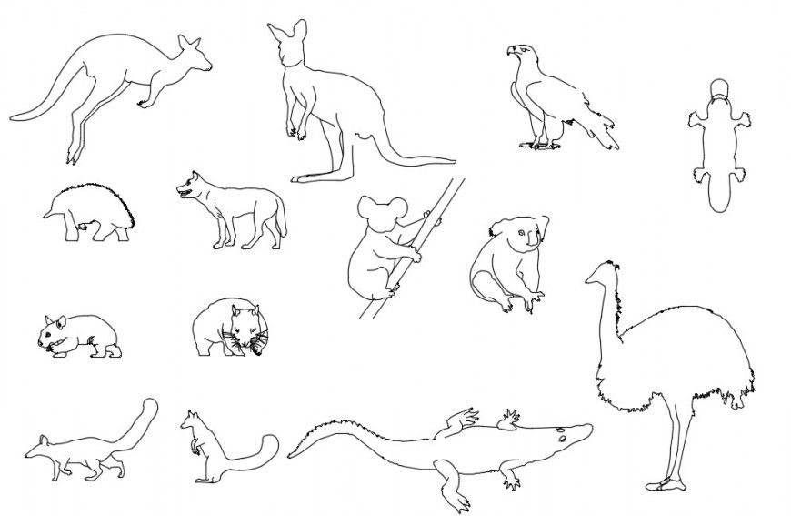 CAd drawings details of polar beer blocks dwg file that includes line drawings of animal blocks.