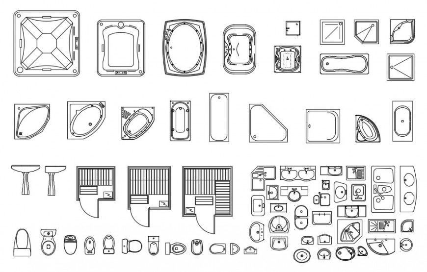 CAd drawings details of bathroom fittings blocks dwg file that includes line drawings of sanitary blocks