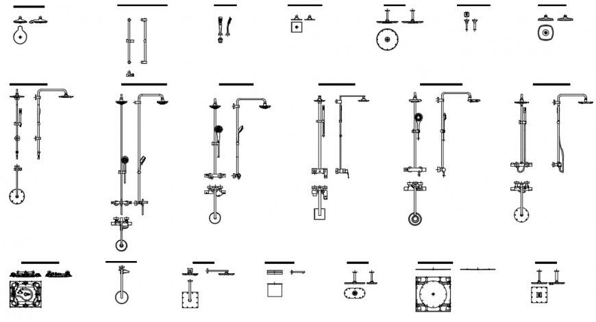 CAd drawings details of bathroom showers blocks dwg file that includes line drawings of sanitary blocks