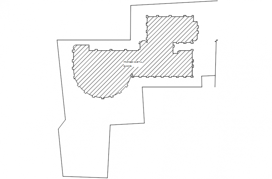 Proposed hospital building top view plan. here there is top view furniture detail plan of a hospital with plan view and structure view details with hatching detail in autocad format