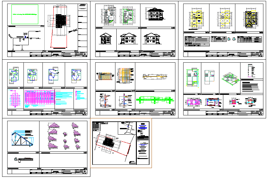 This two floor house design draw in autocad format. Floor plan with furniture design, ground floor plan, first floor plan, modern interior design and landscaping design of house.Two-Floor House Design, Two-Floor House Detail, Two-Floor House Download file.