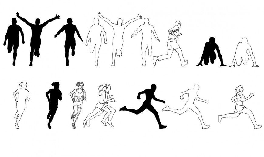 CAd drawings details of people running detailing with hatch area blocks dwg file that includes line drawings of people blocks