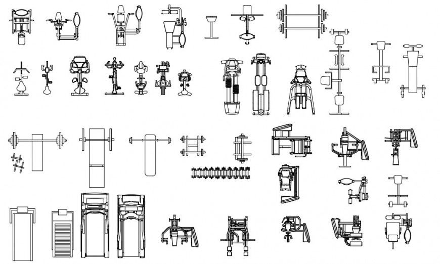 CAd drawings details of gym equipment detailing with hatch area blocks dwg file that includes line drawings of gym cad blocks