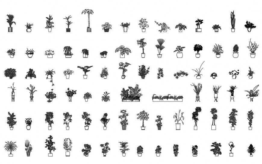 CAd drawings details of Potted plant elevation detailing with hatch area blocks dwg file that includes line drawings of plants and trees blocks
