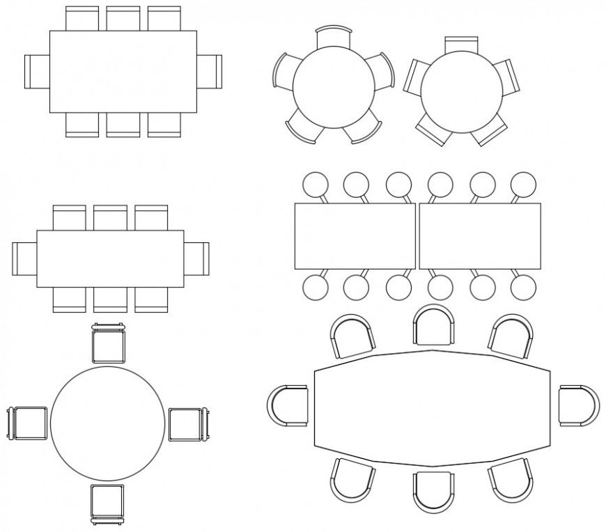 Dining table top view dwg file, here there is top view of table with chairs, with rectangular table and circular table design, complete details in 2d format