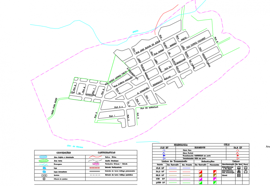 Government City planing Map Lay-out detail, area subject to flood, green area, Intermittent lagoon, Number of blocks, Urban Perimeter - City, Permanent traffic dirt road, private pole transformer, Neighborhood Currency etc