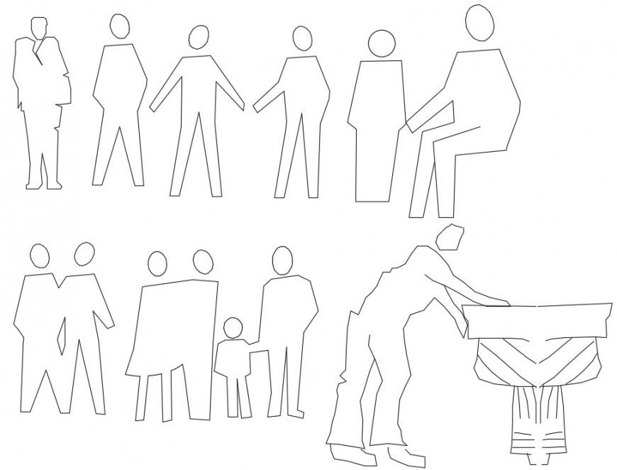 Human traces 2d block detail file. here there is 2d traces of human figures and other people postures design in 2d format