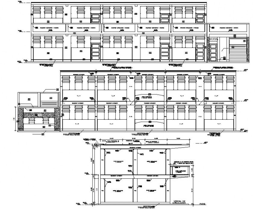 The architecture school elevation project detail cad file includes outside door and window detail, wall design, also have mansion dimension detail cad file, download in a free cad file and use for cad presentation.