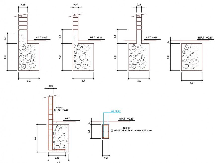 2d cad drawing of foundation detail in all section view, download free dwg file and land doundation plan in autocad software file.
