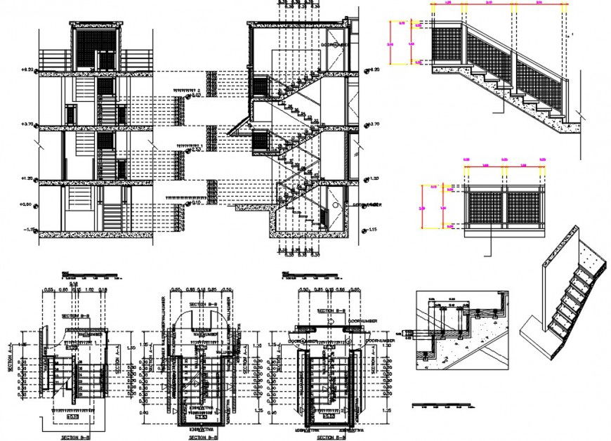 2d staircase construction detail cad file