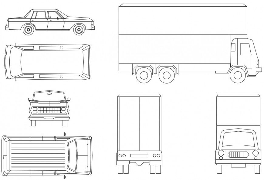 Vehicles 2d model block details file,Lorry 2d block detail. here there is front 2d detail of lorry , front and back view detail and car design model block detail