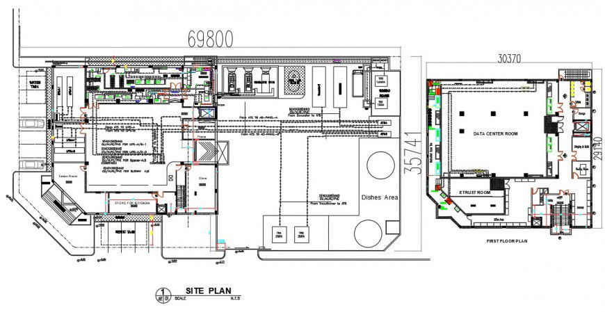 Data centre room elevation autocad software detailed with store for kitchen area and other detailed dishes area and first floor plan with detailed cbinet area and all e-trust room shown in drwing.