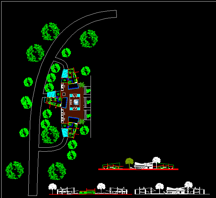 AutoCAD 2D DWG Drawing file of the Single storey villa house plan with a swimming pool is available in this Drawing file. In this Plan the Ground floor has a master bedroom with the attached toilet, a children's bedroom with the attached toilet, Kitchen, Dining, Living room are available. The staircase is available inside the house.