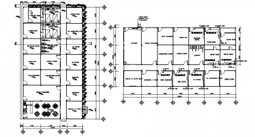 2d cad drawing of hotel project detail includes bedrooms, canteen, offices, laundry room, coaching room, staff restroom, download free autocad file and use for cad presentation.