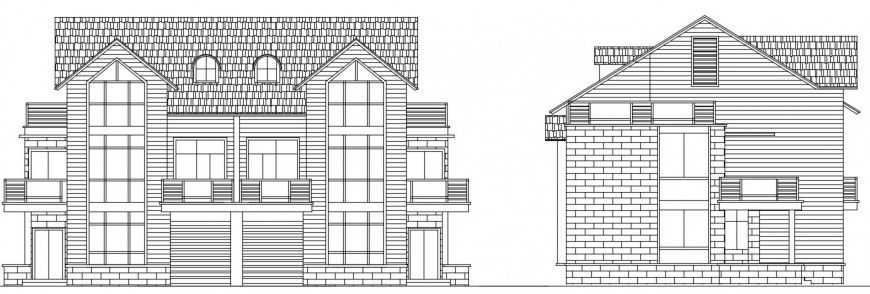 House brick concept model file.this auto cad file contains elevation of a bungalow with brick and stone concept detailing file block showing front and side elevation detail file