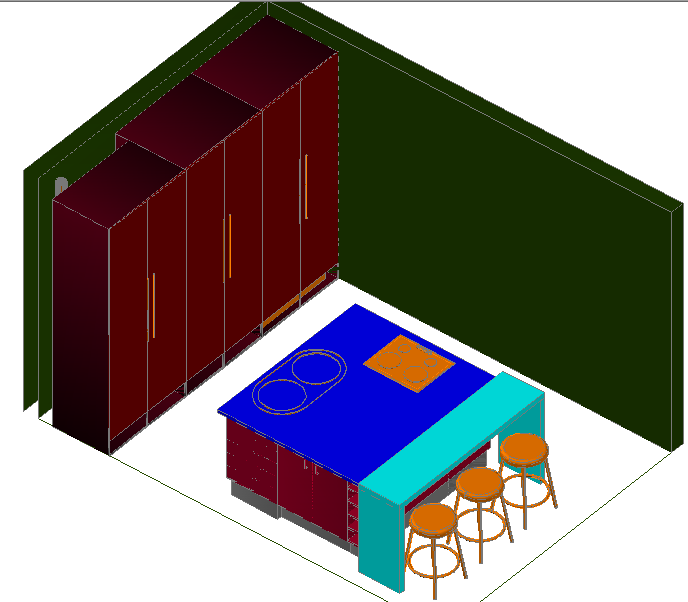 3D design kitchen draw in autocad format.This design in all detail include this file. platform, dinning table all available.3D Kitchen Design, 3D Kitchen DWG file Download.