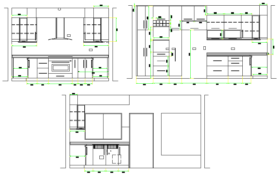 Interior Kitchen DWG Download file, Interior Kitchen DWG Detail. This design draw in autocad format. Layout plan of kitchen, inside section plan, out side section plan, much more detailing section ,Plan with furniture detail.