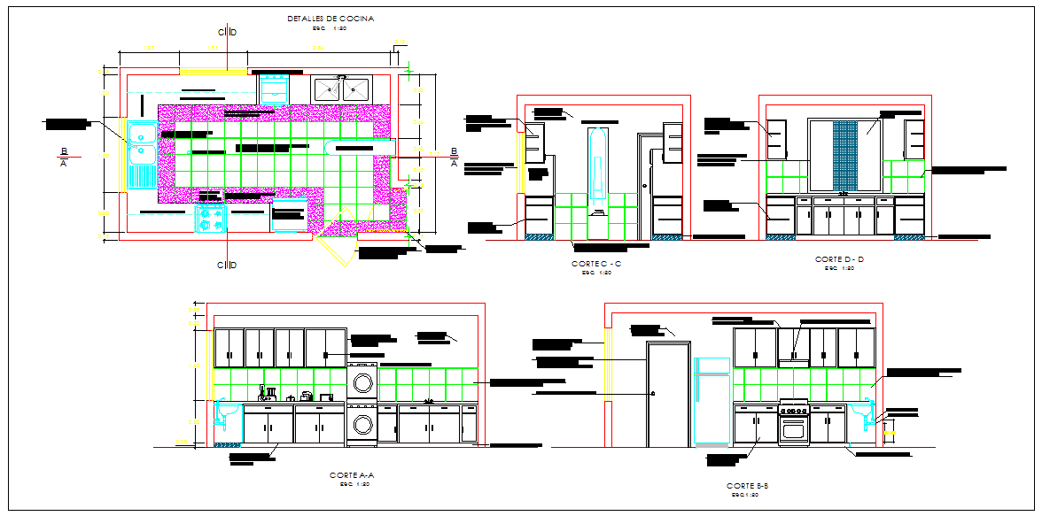 Home Kitchen DWG file. Modern interior design of kitchen including the cabinet design, wall and all side elevation plan for the perfect kitchen interior design.