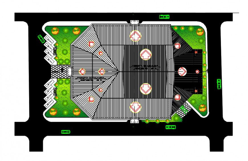 2d cad drawing of stadium top view autocad software file along with landscaping design, downloaxd free cad file and use for cad presentation.