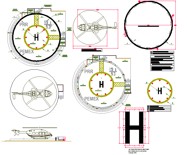A heliport is a small airport suitable only for use by helicopters. Heliports typically contain one or more helipads and may have limited facilities such as fuel, lighting, a windsock, or even hangars. Heliport design Project DWG file, Heliport design Project Detail, Heliport design Project DWG File Download.