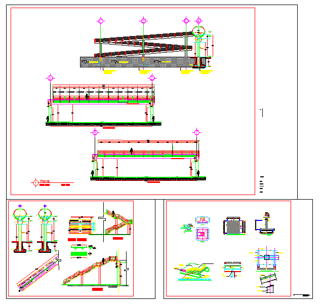 Pedestrian Bridge detail. Footbridges are often situated to allow pedestrians to cross water or railways in areas where there are no nearby roads to necessitate a road bridge.Pedestrian Bridge DWG file, Pedestrian Bridge Download file, Pedestrian Bridge detail