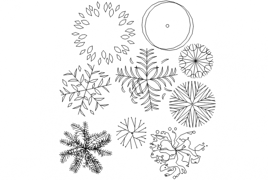 Bushes 2d concept top view. here there is top view model detail of various types of bushes concept in auto cad format