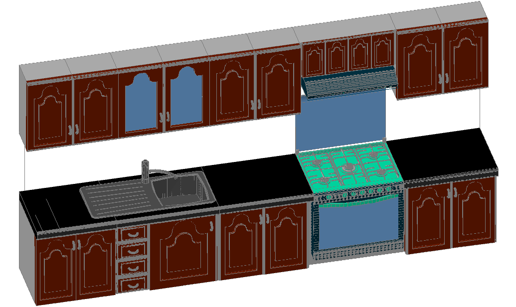 This 3D kitchen Design Draw in autocad format. 3D kitchen Download DWG File.