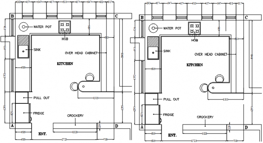 Kitchen cad blocks detailing 2d dwg file,here there is top view plan and sectional elevation detail of kitchen, wash basin and fridge detailing,kitchen equipments details