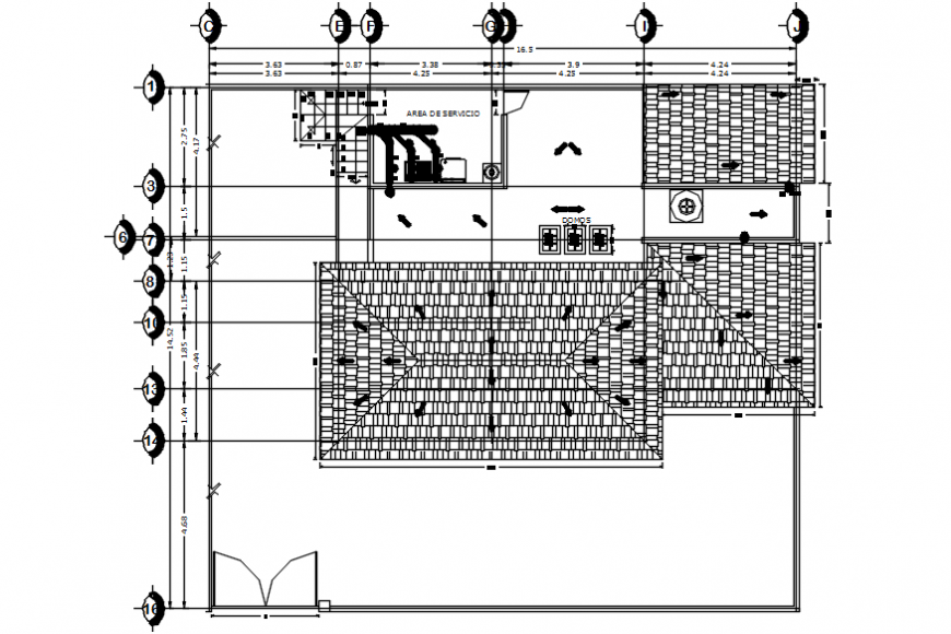 Top roof construction project file detail. here there is top view 2d detail showing depth construction detail file with all texts and details and terracota roofing detail