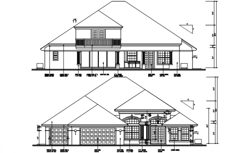 Luxurious big bungalow 2d concept detailing ,elevation of a modern bungalow and exterior , brick construction and terracota tiles roofing detail , complete view of house