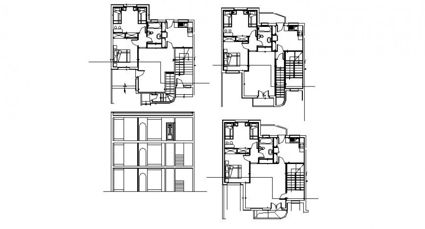 find here residence house project detail include layout plan of the ground floor plan, first-floor plan and second-floor plan along with furniture detail and elevation design in autocad format, download in free autocad file