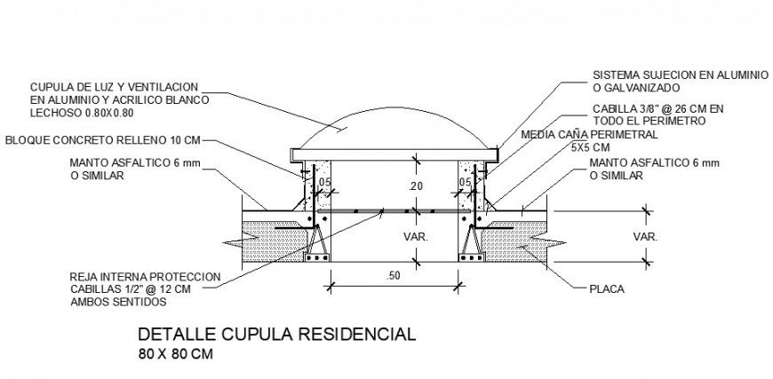 find here section plan and elevation design of light and ventilation cupula in aluminum and white acrylic and aluminum suspension system or galvanized in cad file