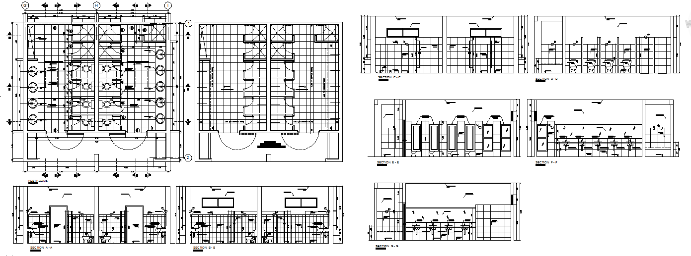 Toilet Design Detail, Toilet Design DWG Download file. this project is having plans of two toilets with various elevations and sections of each bathrooms with flooring plan, electrical plan, wall electrical, false ceiling plan and plumbing plan also included .