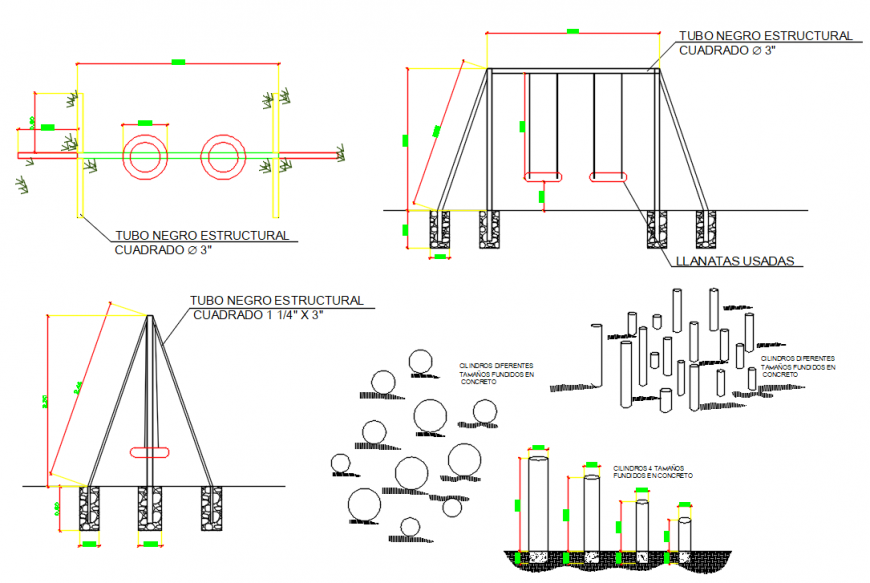 TO SECURE THE SWINGS WHEN THEY ARE ALREADY ARMED, THEY SHOULD BE PART OF SWING WITHIN THE GROUND WITH CONCRETE RESISTANCE 245 KG / CM2.